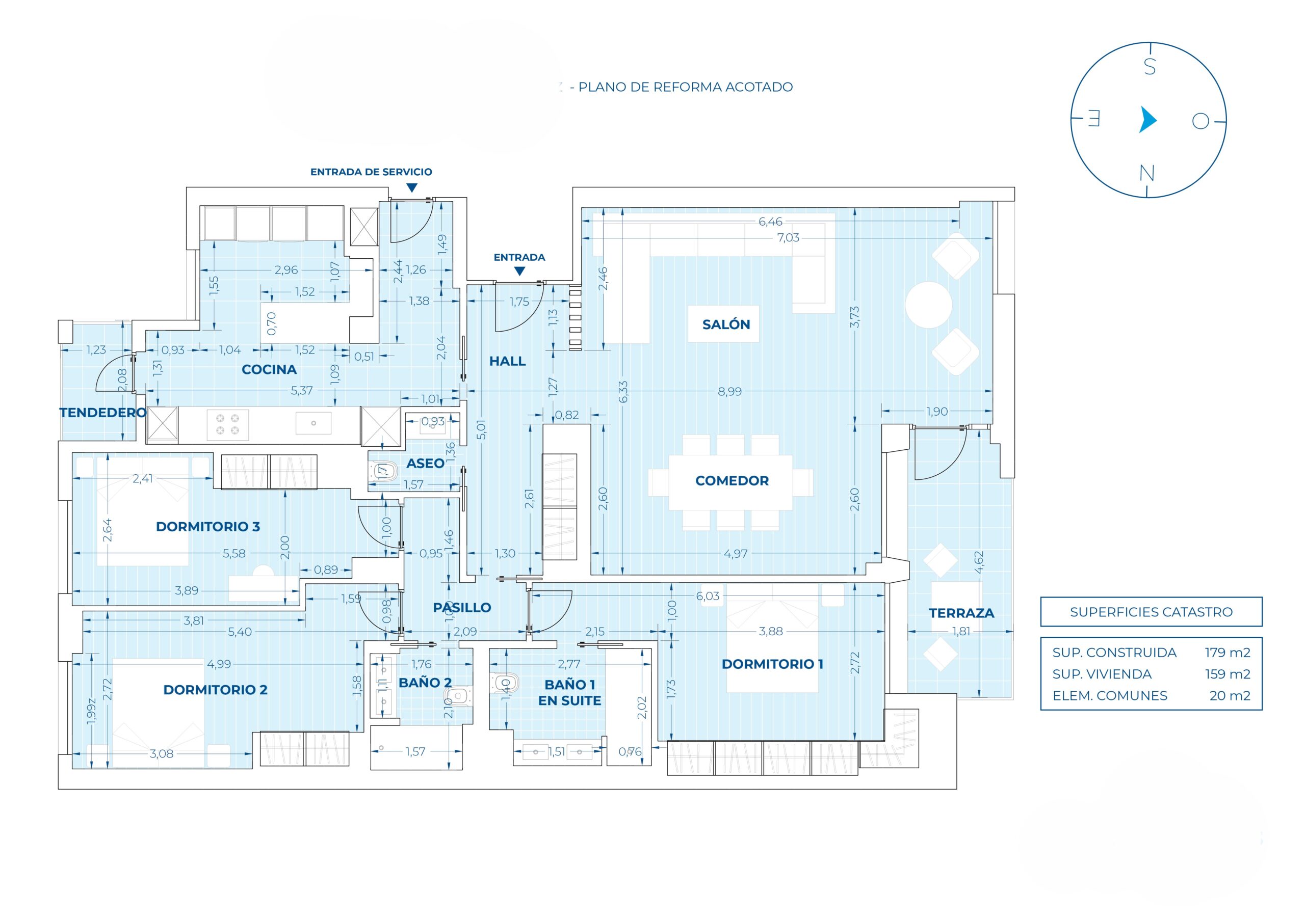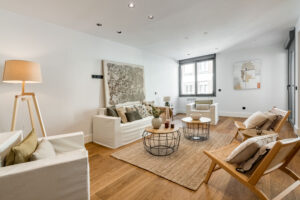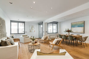Zona Social: el corazón de la casa, con un salón-comedor de dimensiones extraordinarias. Un espacio versátil con capacidad real para una gran mesa de 8 comensales y una zona de descanso para sofás de gran formato (chaise longue). Desde aquí se accede a una amplia terraza privada el rincón perfecto para disfrutar del aire libre en pleno centro. En el pasillo recibidor tenemos un gran armario empotrado y un aseo de cortesía.