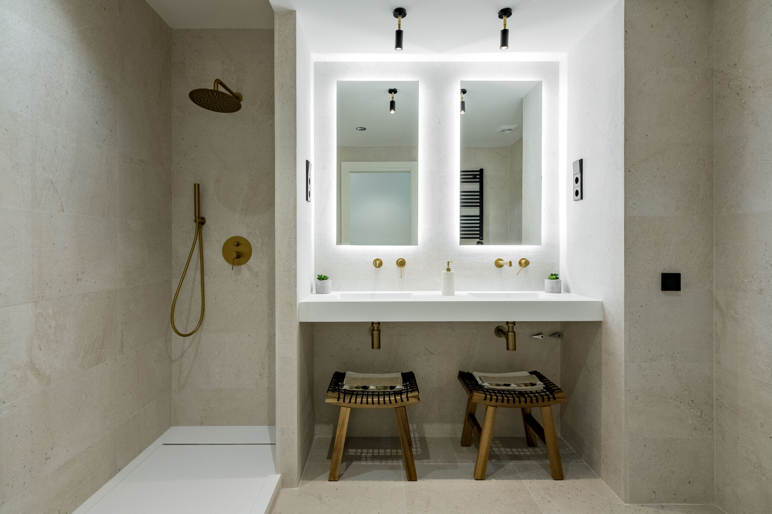 Zona de descanso: dispone de 3 dormitorios amplios. La suite principal es un refugio de privacidad con su propio baño incorporado. Las otras dos habitaciones comparten un segundo baño completo ubicado en el pasillo distribuidor, ideal para familia o invitados, con espejos retroiluminados.