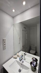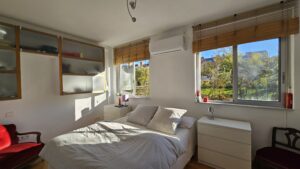 - Suite Principal (12 m²): La joya de la corona, con orientación sur y vistas directas a la Dehesa de la Villa. Se complementa con un generoso vestidor de 6 m² y un gran armario de 3 metros de longitud con estanterías de vidrio y acero. Su baño en suite (3,5 m²) ha sido completamente renovado con ducha y acabados de primera calidad.